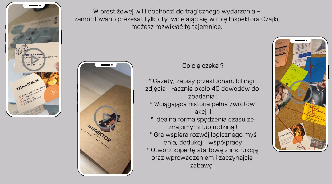 Nie czekaj! Zanurz się w świecie tajemnic i sprawdź, czy potrafisz rozwikłać zagadkę morderstwa prezesa. Gra "Inspektor Czajka - Ostatni Toast Prezesa" czeka na Ciebie!